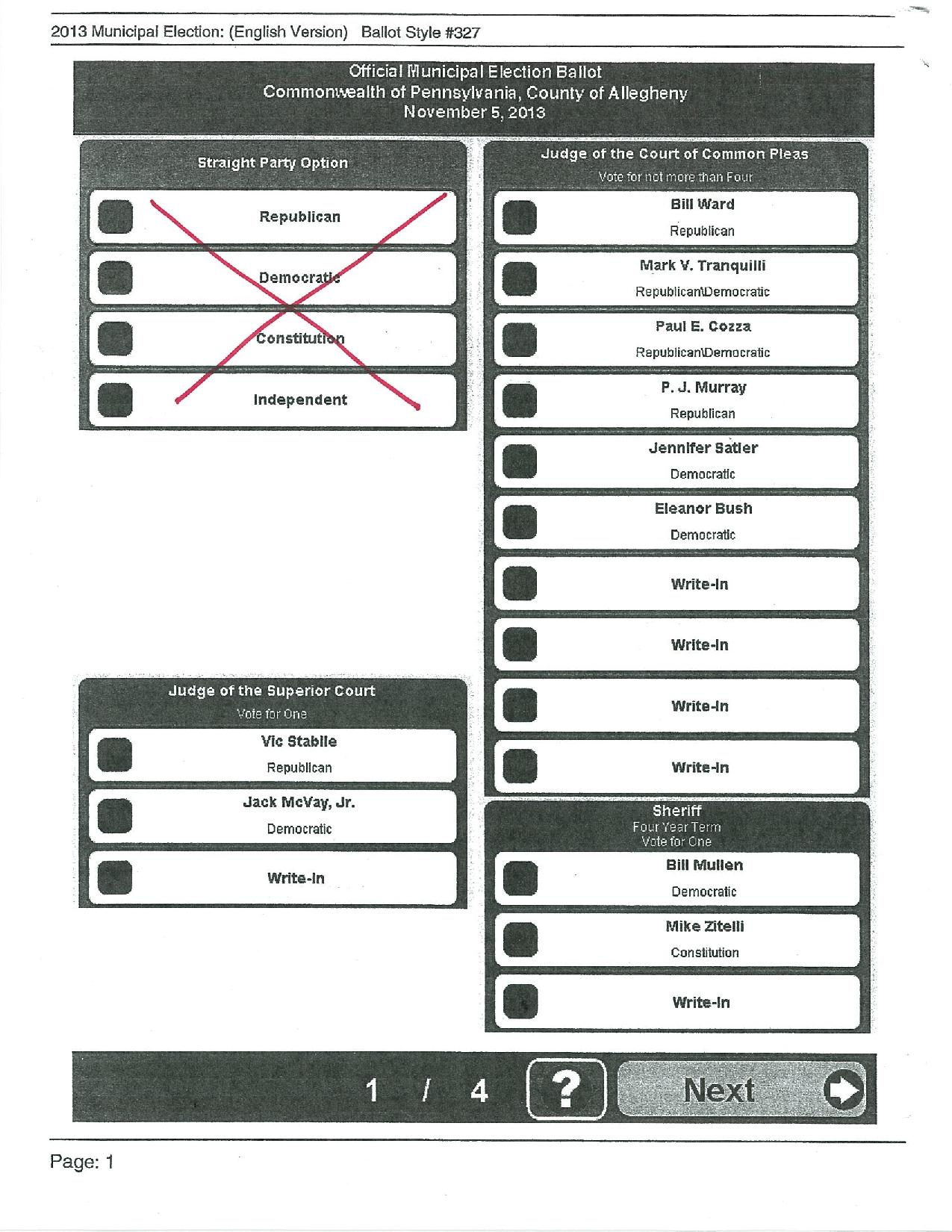 When you enter the voting booth on Tuesday, November 5, your first option will be to vote a “straight-party” ticket. Do not choose this option. Proceed by voting for individual candidates on each section of the ballot.