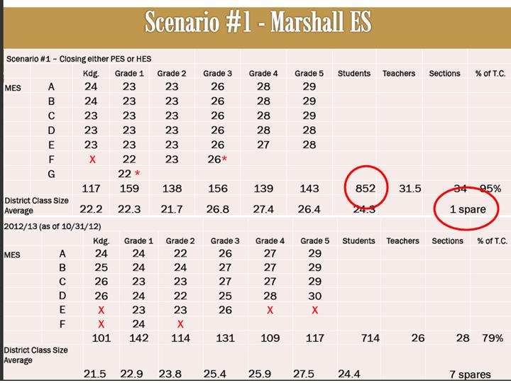 On Nov. 14, 2012, the administration presented a redistricting scenario that would “balance enrollment” by keeping all seven elementary schools open. Under this scenario, the average enrollment per building would be: